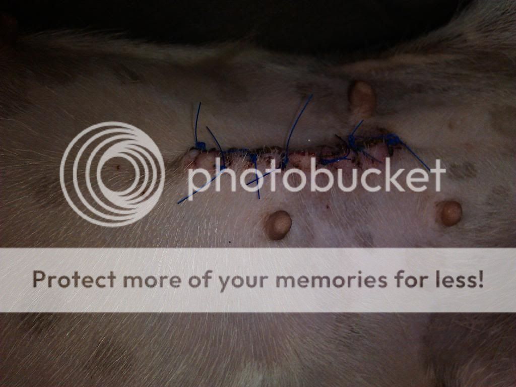 Operationen gick bra och nu har Sookie 6 stygn på magen som ska tas om en vecka 14 dar. Det var en trött och groggy tjej som vi fick hem igår.