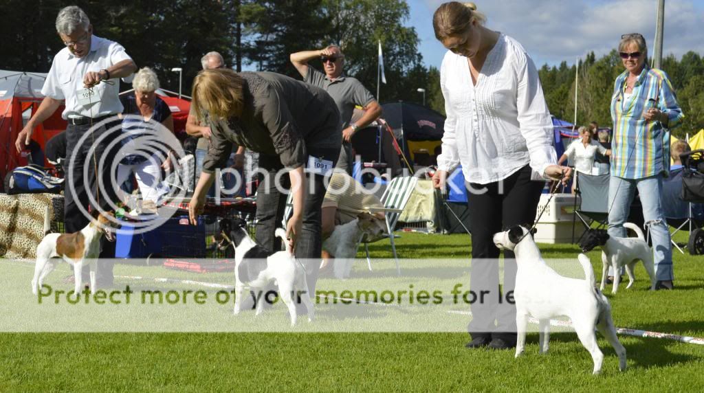 Väl på plats så märker vi att domaren är självklart en snabb en.... Vi värmer hundarna och sedan en liten väntan och det är dags. Fördelen med att ställa många hundar är att man inte hinner oroa sig för så mycket