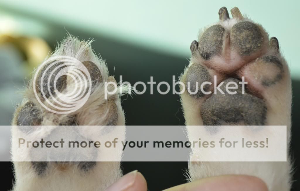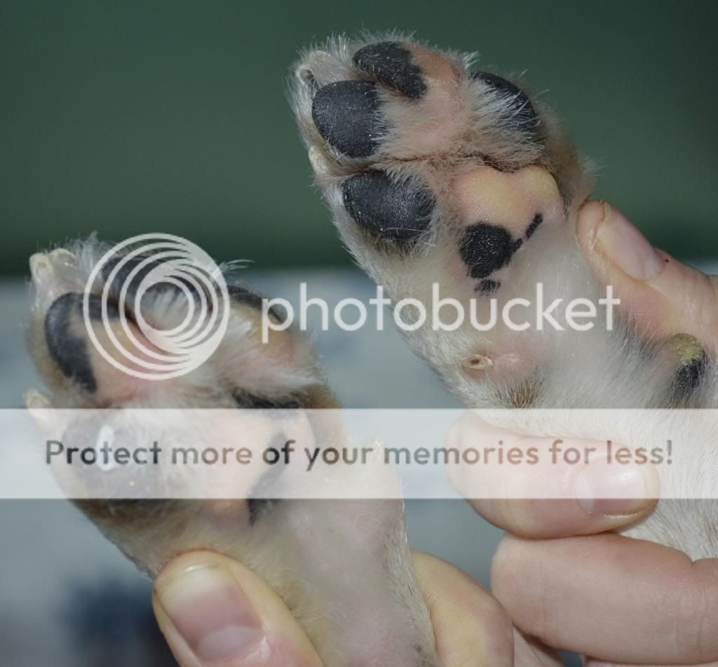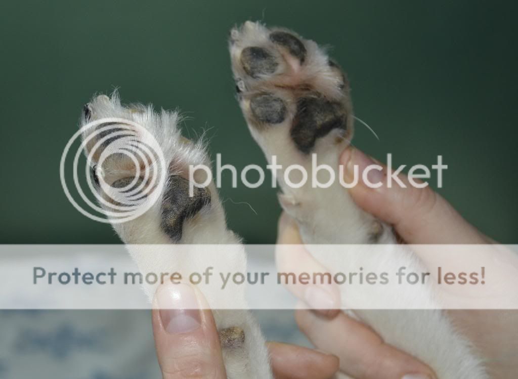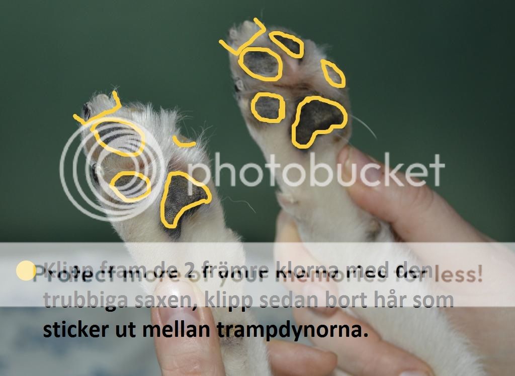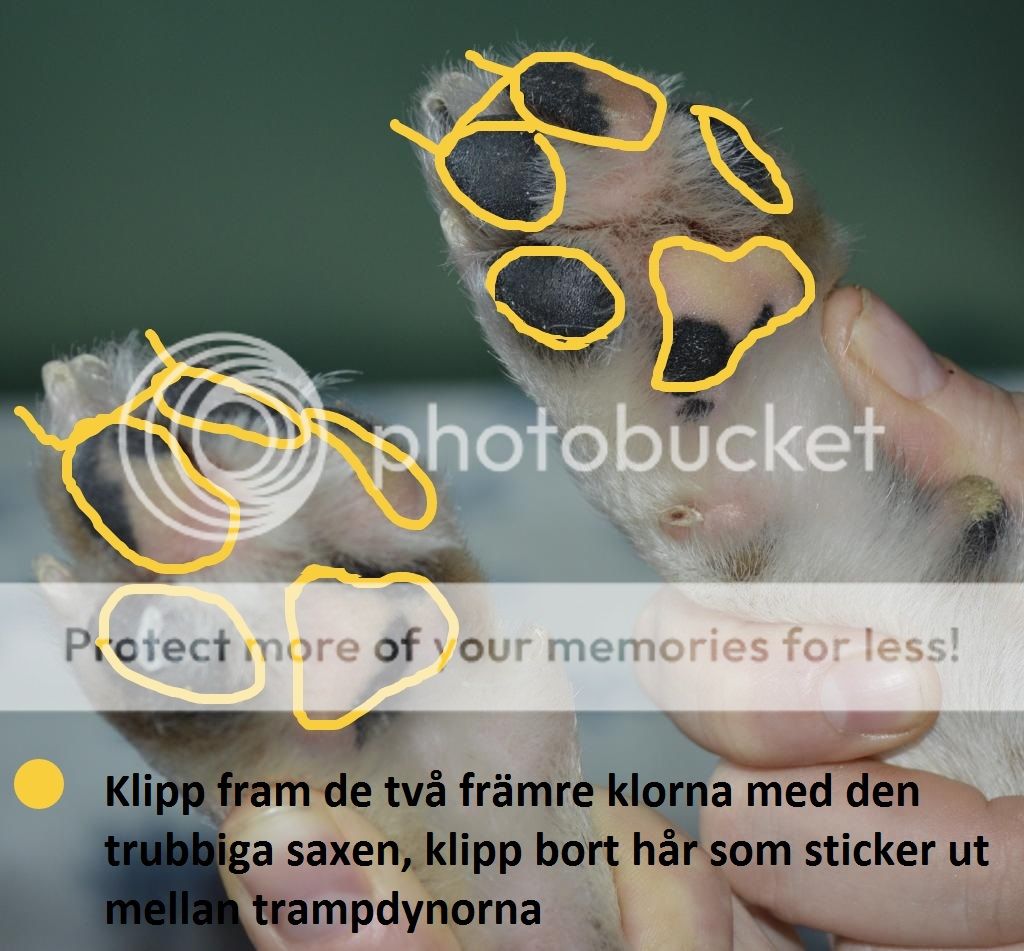 12. Nu är det "bara" tassarna kvar klipp klorna och trimma upp runt trampdynorna. Sedan så tar vi och klipper fram de två främre klorna så vi får en "illusion" av en mer knuten tass.
