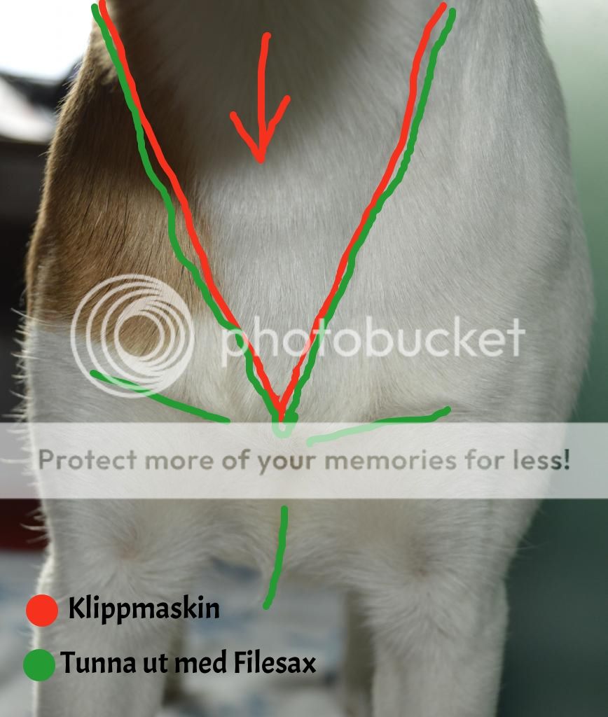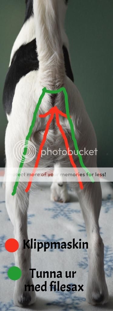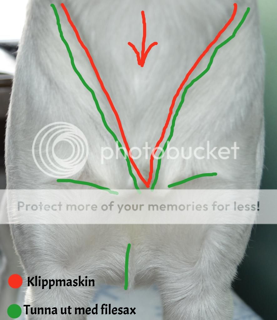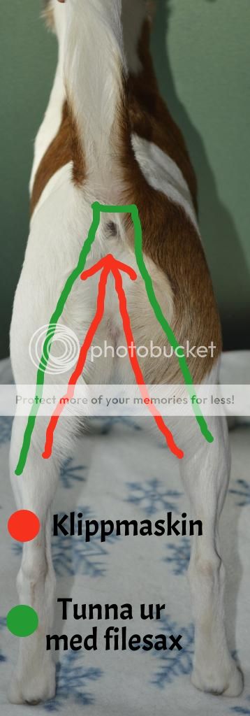 8. Nu tar jag buken klipper fram så det blir en fin linje på undersidan av magen och i jumske.